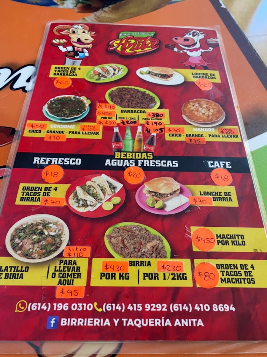 1 Litro de consomé con 200 gr de carne de borrego, acompañado de tortillas de maíz, cebolla, cilantro, salsa de árbol y limón.